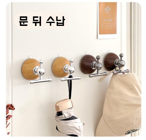 문 뒤 펀치 프리 헴 흡착판 걸이 강력 빨판 행거 현관 우드 강력 걸이 화장실 행거
