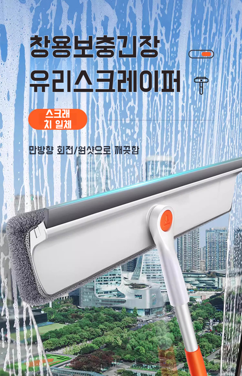 가정용 편리한 수납 양면 신축봉 유리 닦기 전용공구 고층창 청소 청소공구